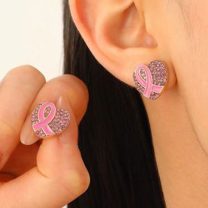 甜美丝带满钻爱心耳钉女粉色桃心领结耳环2025情人节气质百搭耳饰