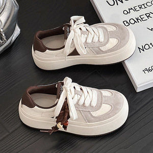 德训鞋女2025秋季新款真皮休闲鞋百搭小白鞋轻便松糕厚底时尚板鞋