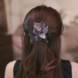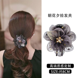 巴黎王妃朝花夕拾花朵丸子头抓夹女高级感盘发夹显发量发卡马尾夹