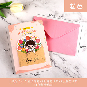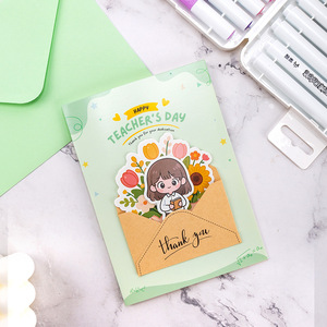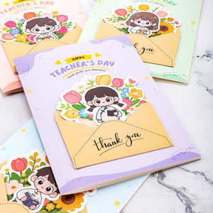 新款教师节3D立体贺卡手工折叠卡片可爱卡通节日感谢祝福留言信封