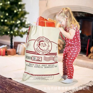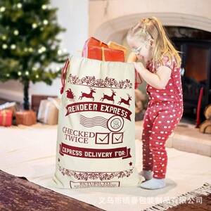 跨境热销圣诞老人大号棉布帆布袋印花鹿抽绳束口袋节日派对包装袋