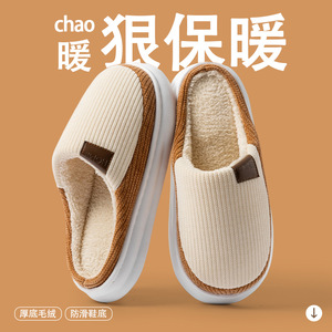 棉拖鞋女秋冬季新款室内家居防滑厚底保暖加绒情侣毛毛拖鞋男冬天