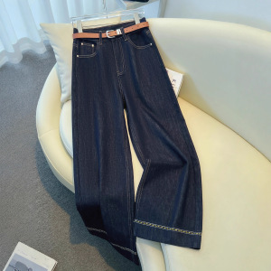 深色奶白色牛仔裤女春秋季2025新款爆款复古窄版直筒裤宽松阔腿裤