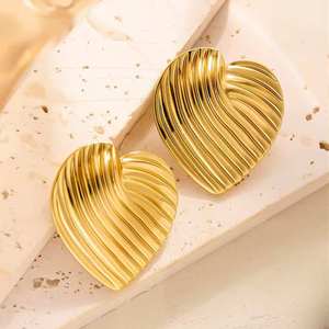 欧美时尚不锈钢18K金花瓣花朵褶皱纹理耳饰耳环耳钉厂家批发饰品