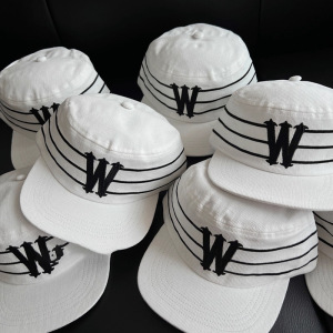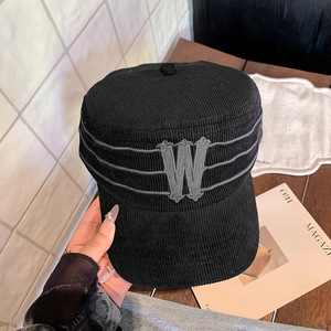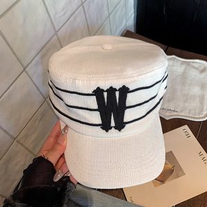 秋冬韩国小众独立设计潮牌W字母条纹鸭舌帽男女灯芯绒平檐棒球帽