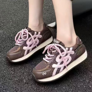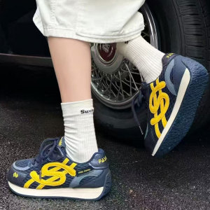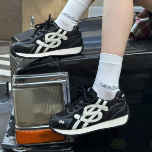 复古厚底老爹鞋女2025夏秋新款真皮时尚拼色百搭跑步运动阿甘鞋女