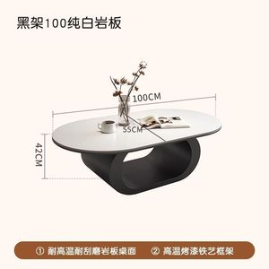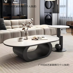 现代简约椭圆形岩板茶几客厅小户型家用极简茶桌创意异形组合简约