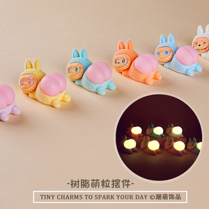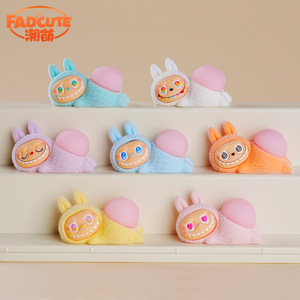 潮玩树脂摆件公仔拉布布 车内饰品diy配件植绒萌粒袋盲袋车载挂件
