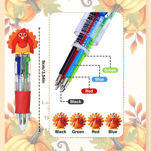 可爱感恩节迷你四色圆珠笔儿童高颜值多色手帐标记笔学生文具批发