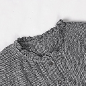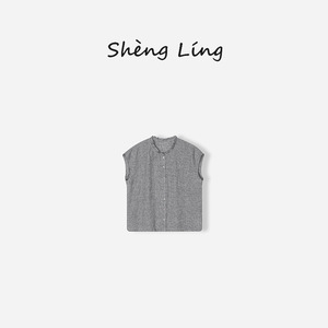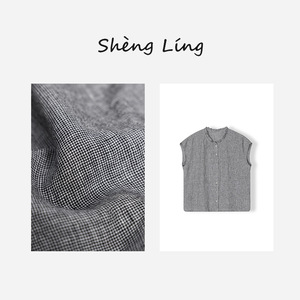 色织亚麻千鸟格无袖衬衫色织布女士木耳边圆领新中式衬衣
