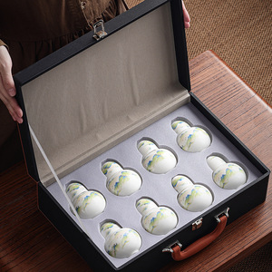 羊脂玉酒具一口杯高档礼盒酒壶套装分酒器酒杯葫芦酒瓶陶瓷酒具