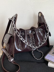复古菱格链条腋下包包女2025夏季法式约姿时尚抽绳通勤单肩斜挎包