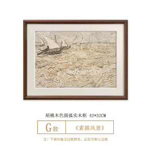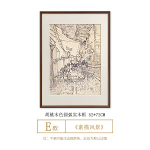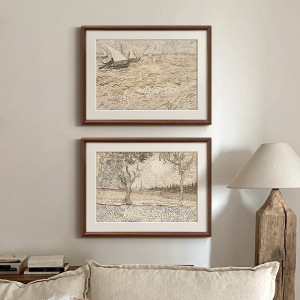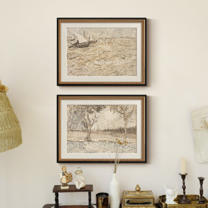 梵高素描风景画组合画法式复古艺术客厅装饰画中古风玄关斗柜挂画
