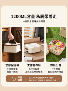 【至尊款-不锈钢内胆】 加大双格1200ML120W大功率速热+新款保温袋+筷勺
