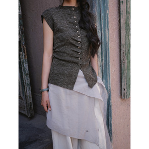 【COMOS CMS】2025秋季新款亚麻无袖开衫针织上衣女外穿CM255017