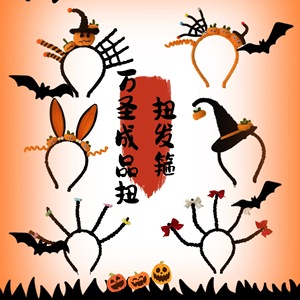 万圣节小魔女蒙娜巫师帽南瓜灯搞怪发箍扭扭棒成品发饰万圣派对头