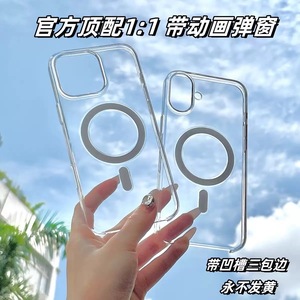 适用苹果17ProMax官方透明磁吸手机壳iPhone16带动画三包12保护套