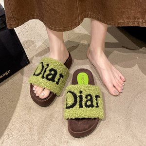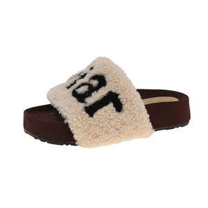 厚底毛毛拖鞋女外穿2025年秋冬季新款时尚百搭一字拖字母羊羔女鞋