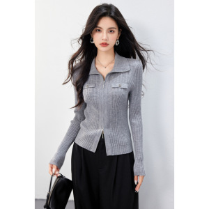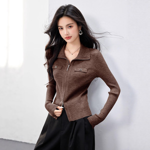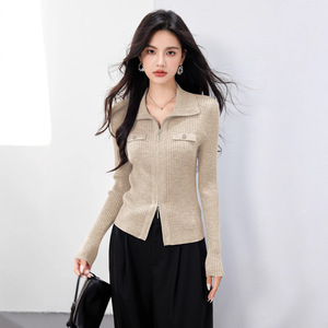 2025秋季新款时尚百搭简约双头拉链设计修身显瘦针织开衫女A5428