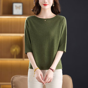 【厂家直供】纯色天丝圆领七分袖T恤女夏季薄款宽松百搭冰丝上衣