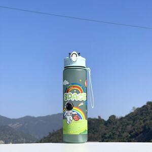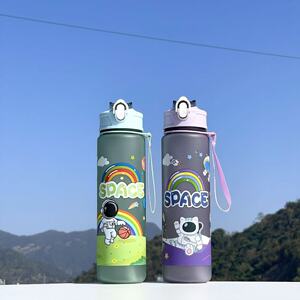 跨境宇航员磨砂水杯弹跳吸管便携杯可爱高颜值塑料儿童水杯批发