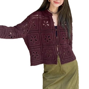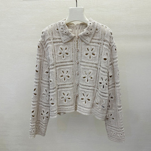 高端法式钩花镂空2025秋款上新翻领单排扣长袖针织开衫 CM113