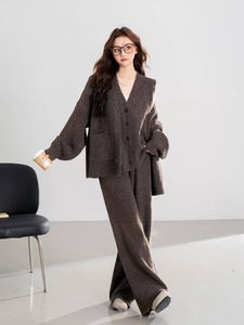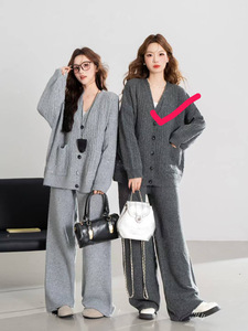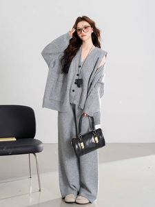 2025秋冬新款麻花针织马甲+毛衣外套+阔腿裤三件套气质针织套装女