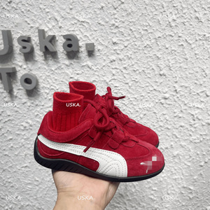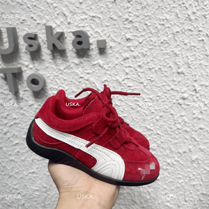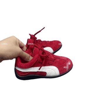 儿童真皮板鞋德训鞋红色2025秋季新款女童运动鞋防滑软底潮牌童鞋