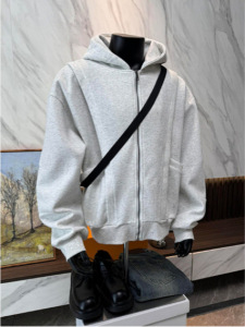 美式复古boxy重磅拉链开衫卫衣男秋冬加厚外套宽松短款连帽衫夹克