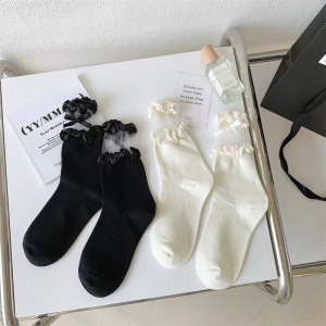 白色蕾丝花边袜子女夏薄芭蕾风中筒配小皮鞋玛丽珍蝴蝶结小腿袜