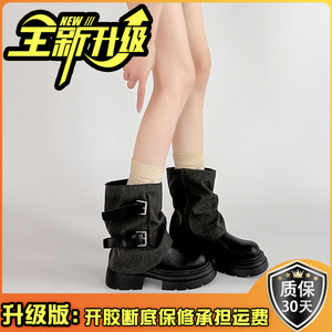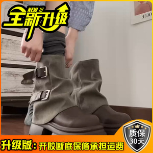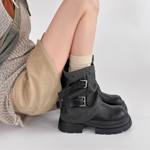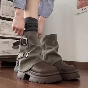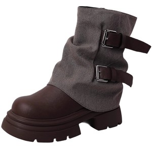 设计感百搭短靴时尚复古皮带扣中筒靴子女秋冬季英伦风拼色马丁靴