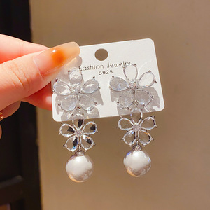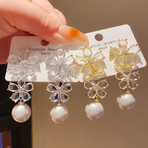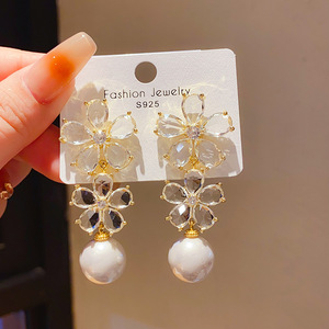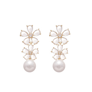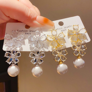 银针轻奢锆石仿珍珠花朵耳环欧美复古宫廷风小众高级感气质耳饰女