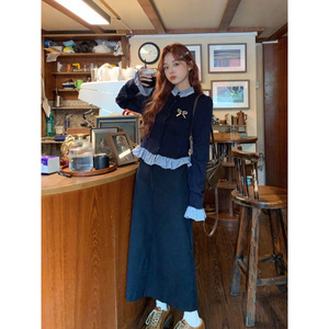 学院风小众假两件蝴蝶结长袖毛衣女装秋季宽松显瘦短款针织衫上衣
