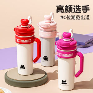 女生高颜值吸管冰霸杯大容量316不锈钢保温杯巨无霸便携手柄水杯