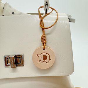 真皮植鞣皮圆牌挂件小象包包挂件钥匙扣装饰手账本挂饰创意小物