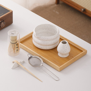 7件套Matcha set 紫色黑墨点茶筅抹茶刷百本立陶瓷抹茶碗工具套装