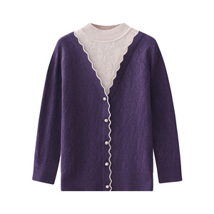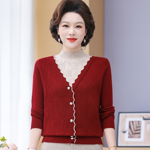 中老年女装洋气妈妈装秋装上衣时尚中年人假两件秋季衣服针织衫女