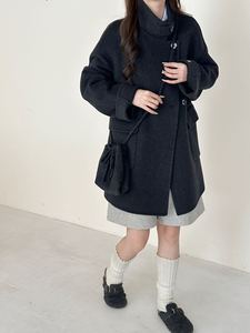 送包包2025秋冬新款小个子双面羊毛大衣 中长款宽松立领羊毛外套