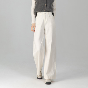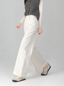 不挑人版型经典窄版阔腿裤女秋季新款丹宁蓝高腰遮肉显瘦简约风白