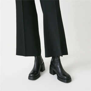 羊皮厚底真皮短靴女2025新款粗跟高跟靴子中筒靴骑士机车靴瘦瘦靴