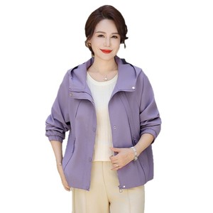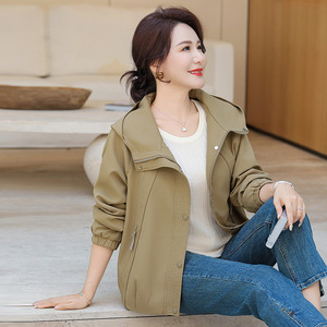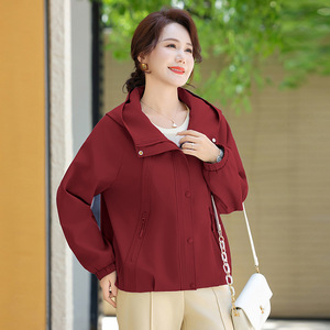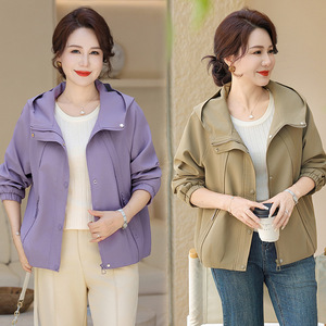 中老年女装春秋季休闲长袖连帽外套妈妈装修身宽松百搭大码夹克衫