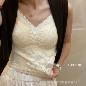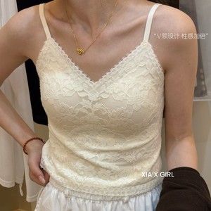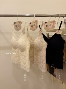 婴儿肌磨毛吊带背心女内搭胸垫一体式杯垫睫毛蕾丝纯欲风美背内衣