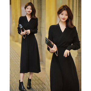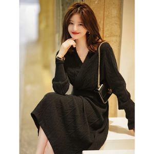 7198奥黛丽轻奢宽松时尚茶歇裙秋季新款气质高级感提花V领连衣裙