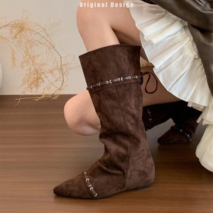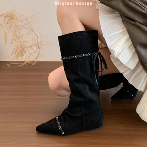 "废土辣妹"内增高西部牛仔靴女秋冬堆堆长筒靴系带显瘦不过膝长靴