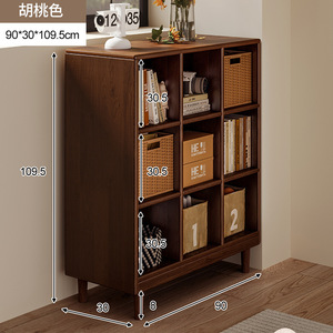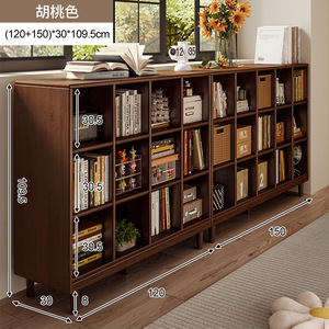 书架落地胡桃色矮书柜格子柜客厅靠墙储物柜家用置物柜收纳