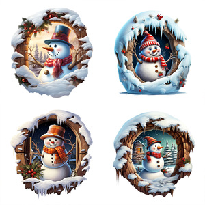厂家昆尚品新款圣诞节3D破墙圣诞雪人自粘墙贴画客厅卧室装饰贴画
