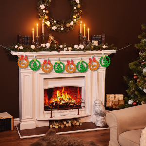 圣诞节驯鹿圣诞树圆形拉花,适用于圣诞壁炉装饰拉花圣诞派对装饰