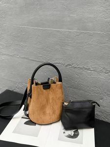 复古磨砂麂皮水桶包高级感时尚手提菜篮子子母包休闲单肩斜挎包