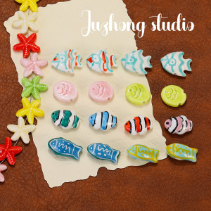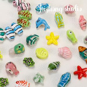 海洋动物系列小鱼海星贝壳陶瓷珠子 diy手链项链散珠饰品配件串珠