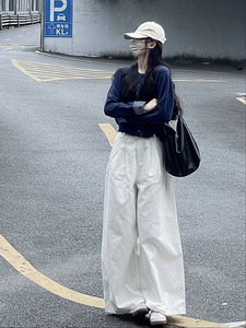 白色复古肌理纹高腰阔腿牛仔裤女秋冬新款宽松显瘦百搭直筒拖地裤